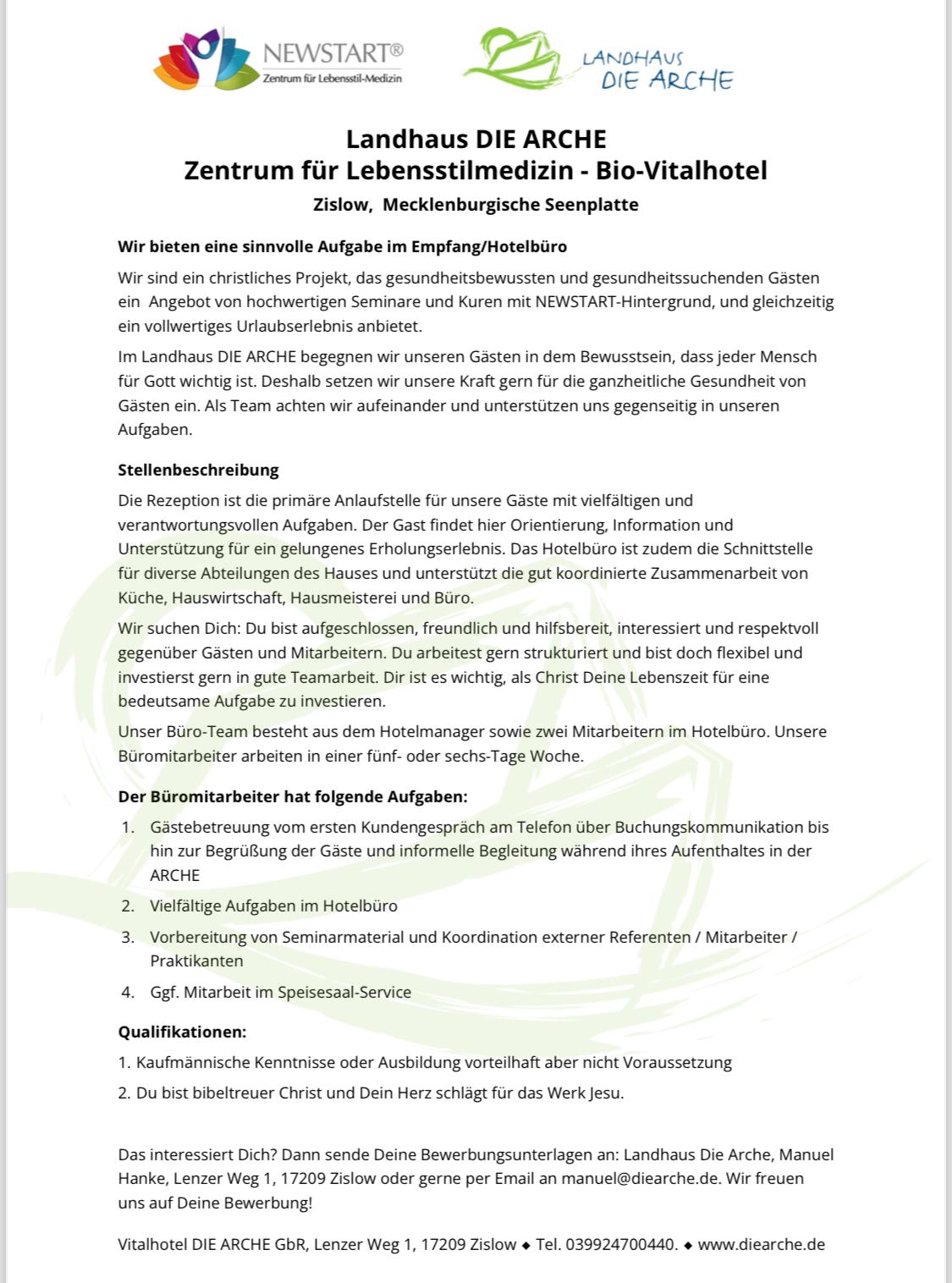 Das interessiert Dich? Dann sende Deine Bewerbungsunterlagen an: Landhaus Die Arche, Manuel